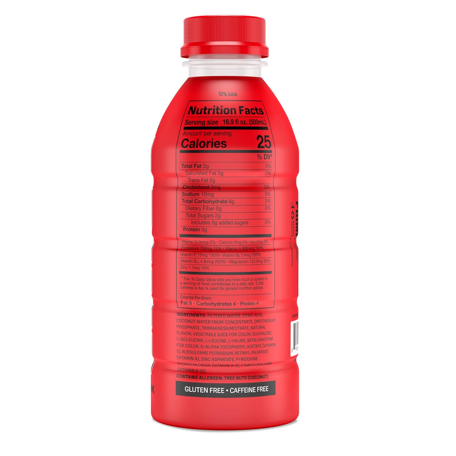 - NO ARTIFICIAL COLORS OR FLAVORS: Every bottle is naturally flavored and contains zero caffeine, zero added sugar, no artificial colors, and is gluten free. With 834mg of electrolytes, essential B vitamins, antioxidants, and coconut water, Prime delivers clean, functional hydration when you need it most.